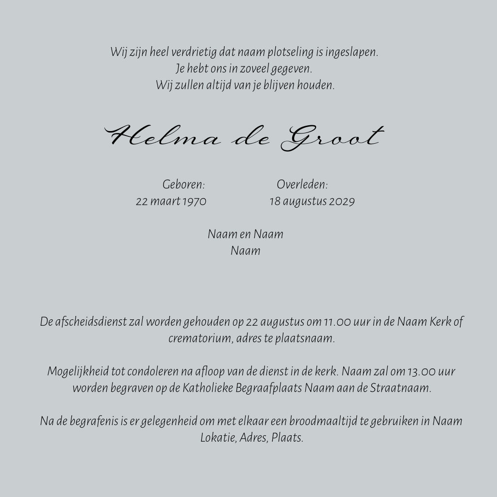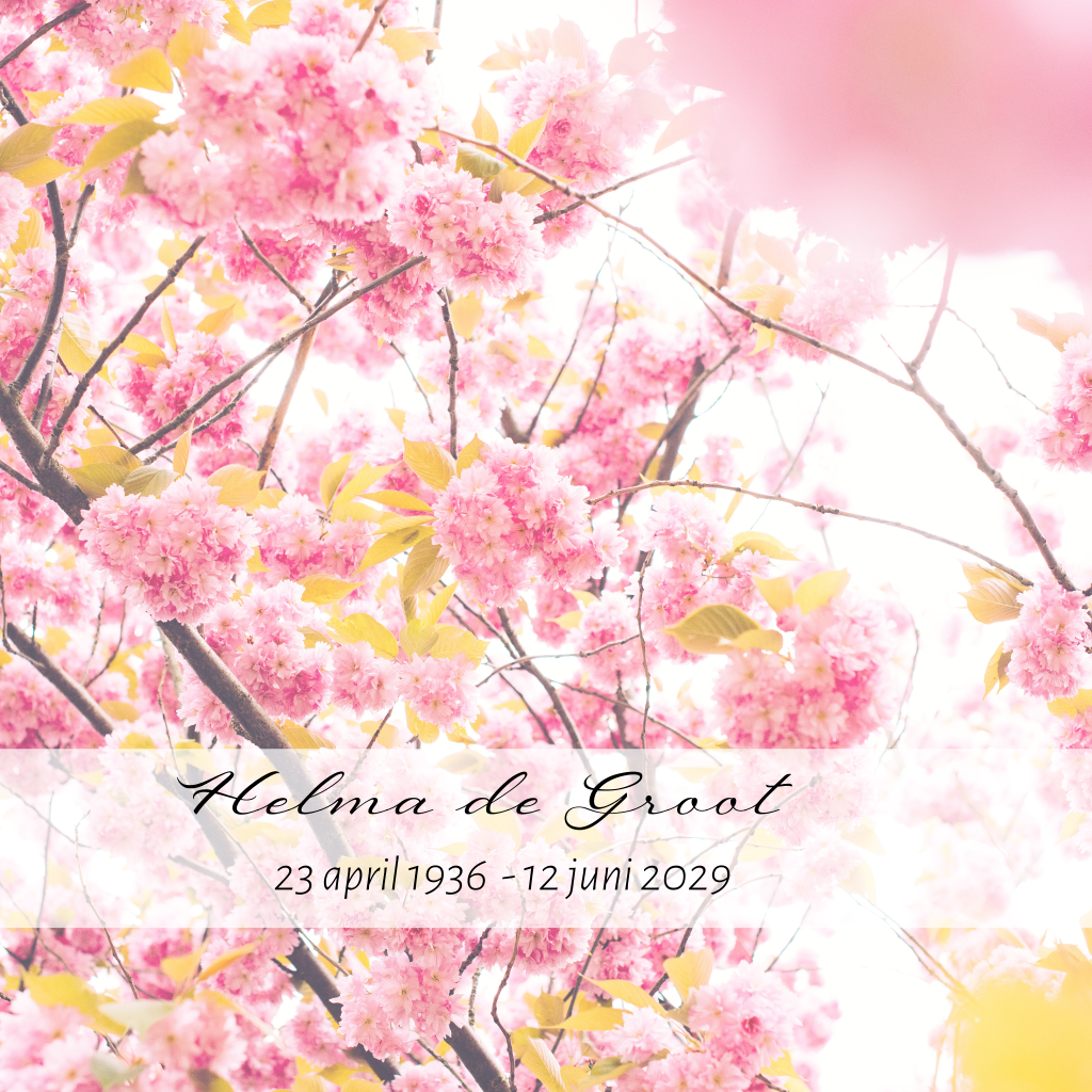 Rouwkaart vrouw met prachtig gefotografeerde bloesem