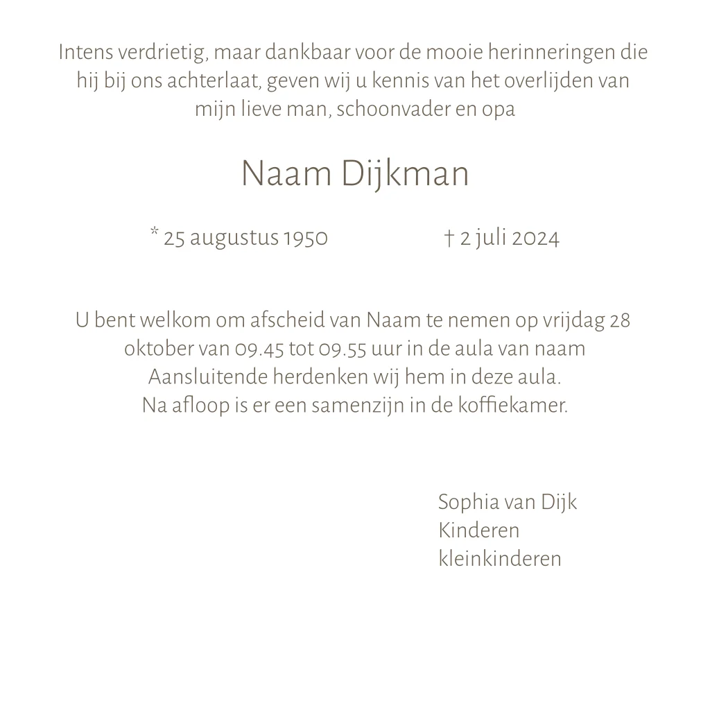 Rouwkaart zee zicht ondergaande zon