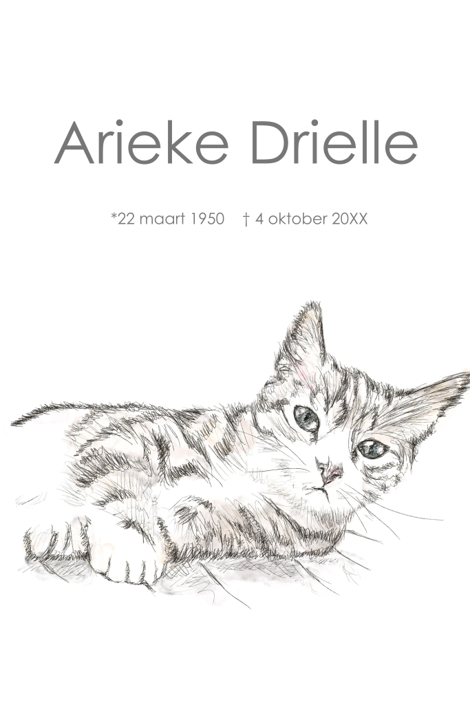 Mooie rouwkaart met getekende kat. De foto is eventueel te vervangen en de achterkant kan omgekleurd worden. (532)