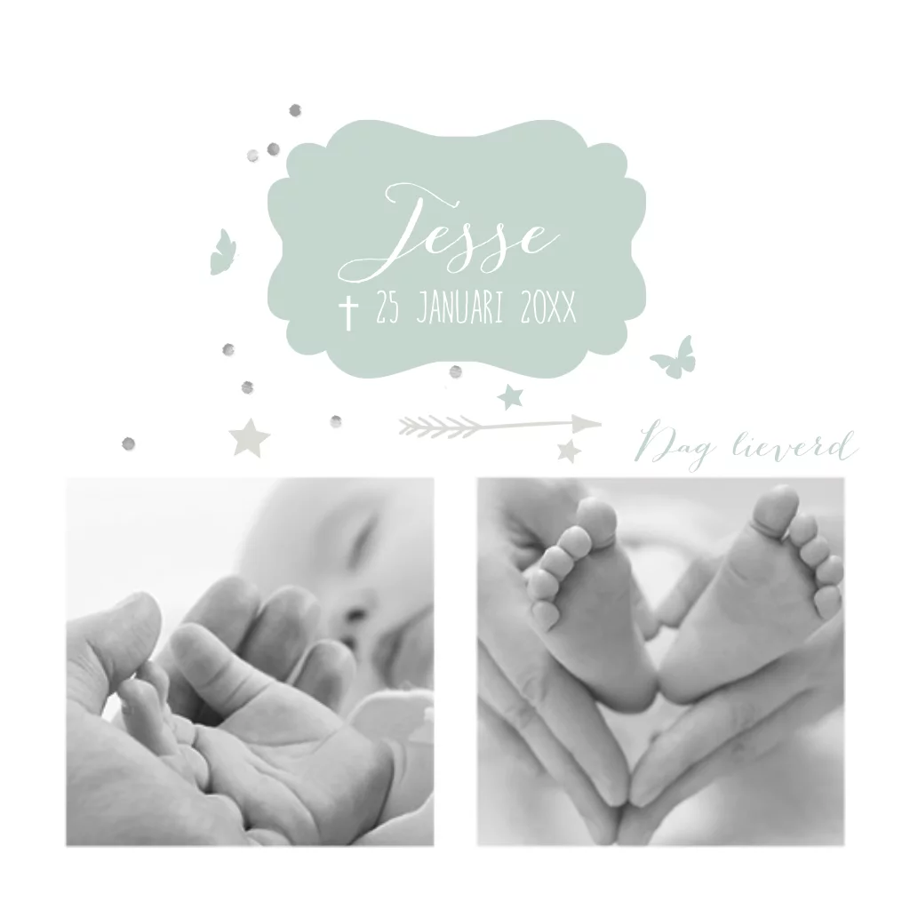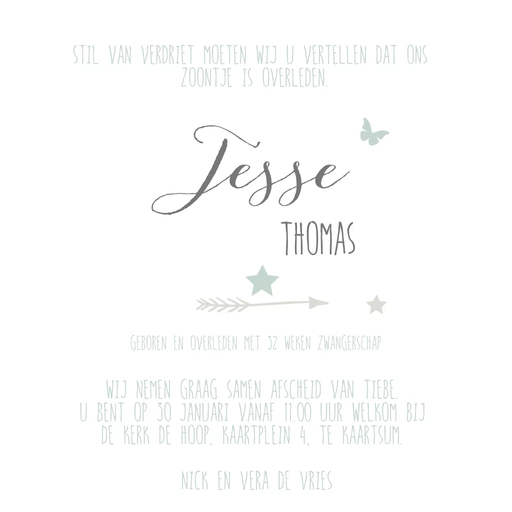 Rouwkaartje baby jongetje met foto en vlindertjes