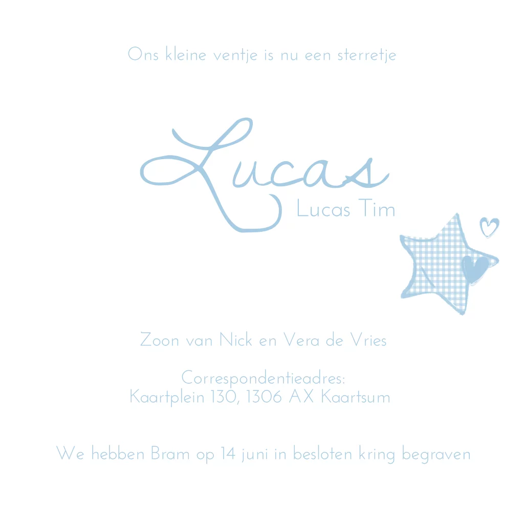 Rouwkaart kind jongen met ruitjes ster en harten. (1054)