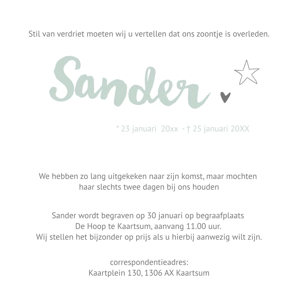 Rouwkaart baby jongetje met mint groene ster. (1059)