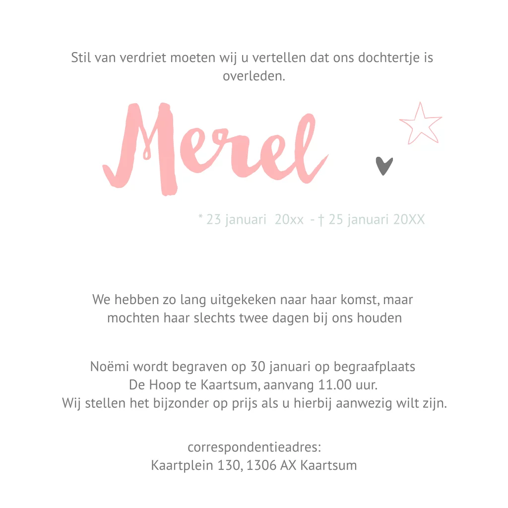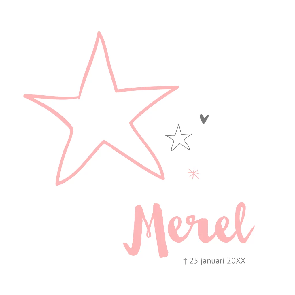 Rouwkaartje kind meisje roze en ster