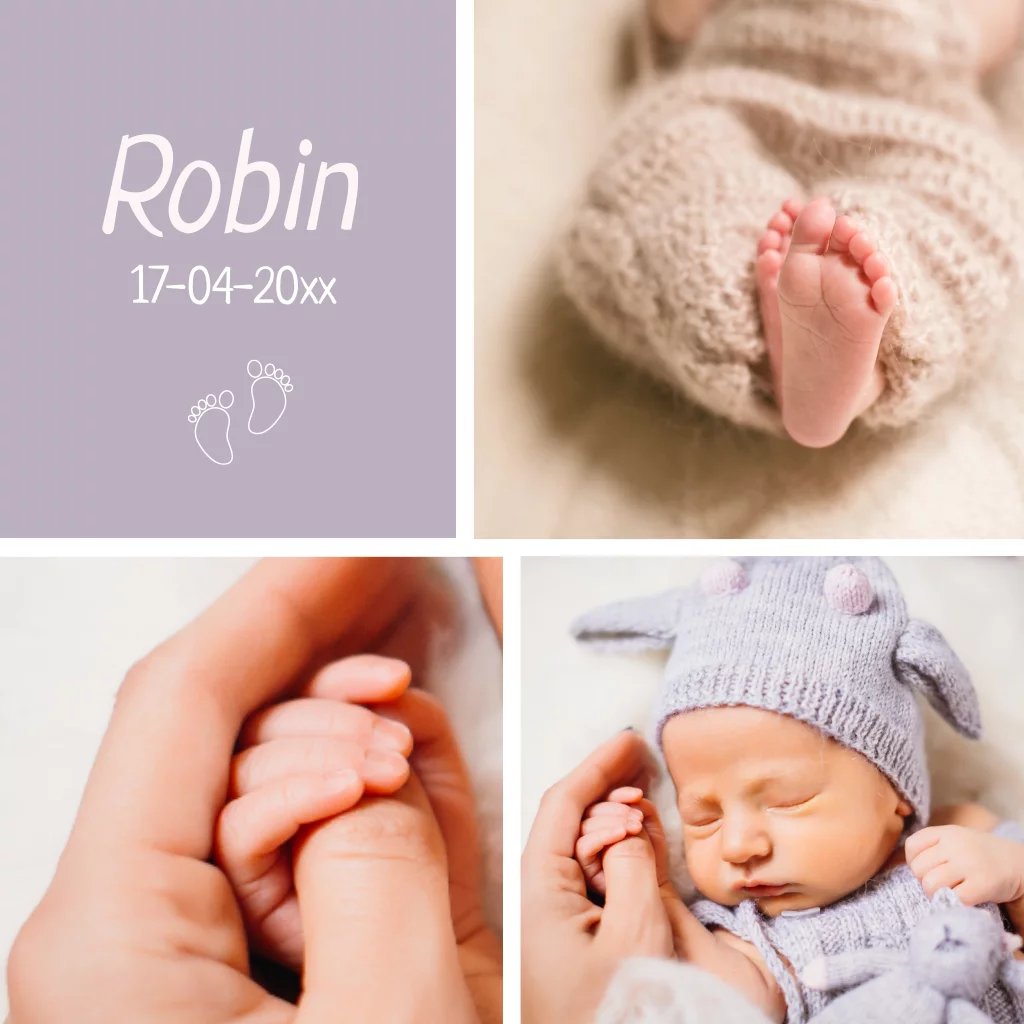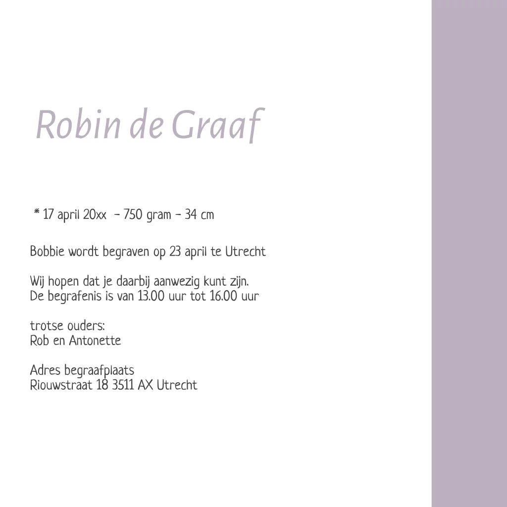 Rouwkaart baby met mogelijkheid plaatsen meerdere foto's