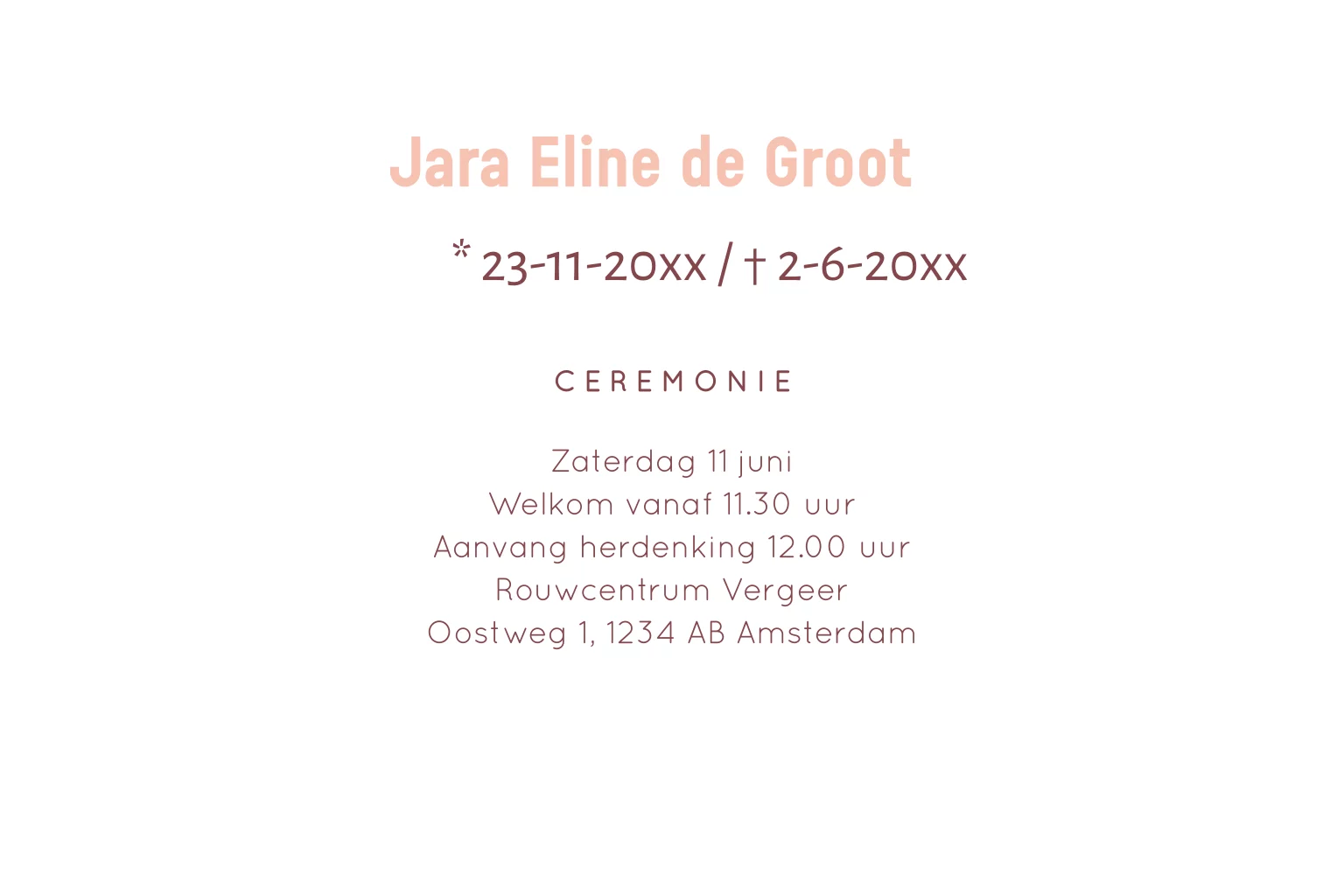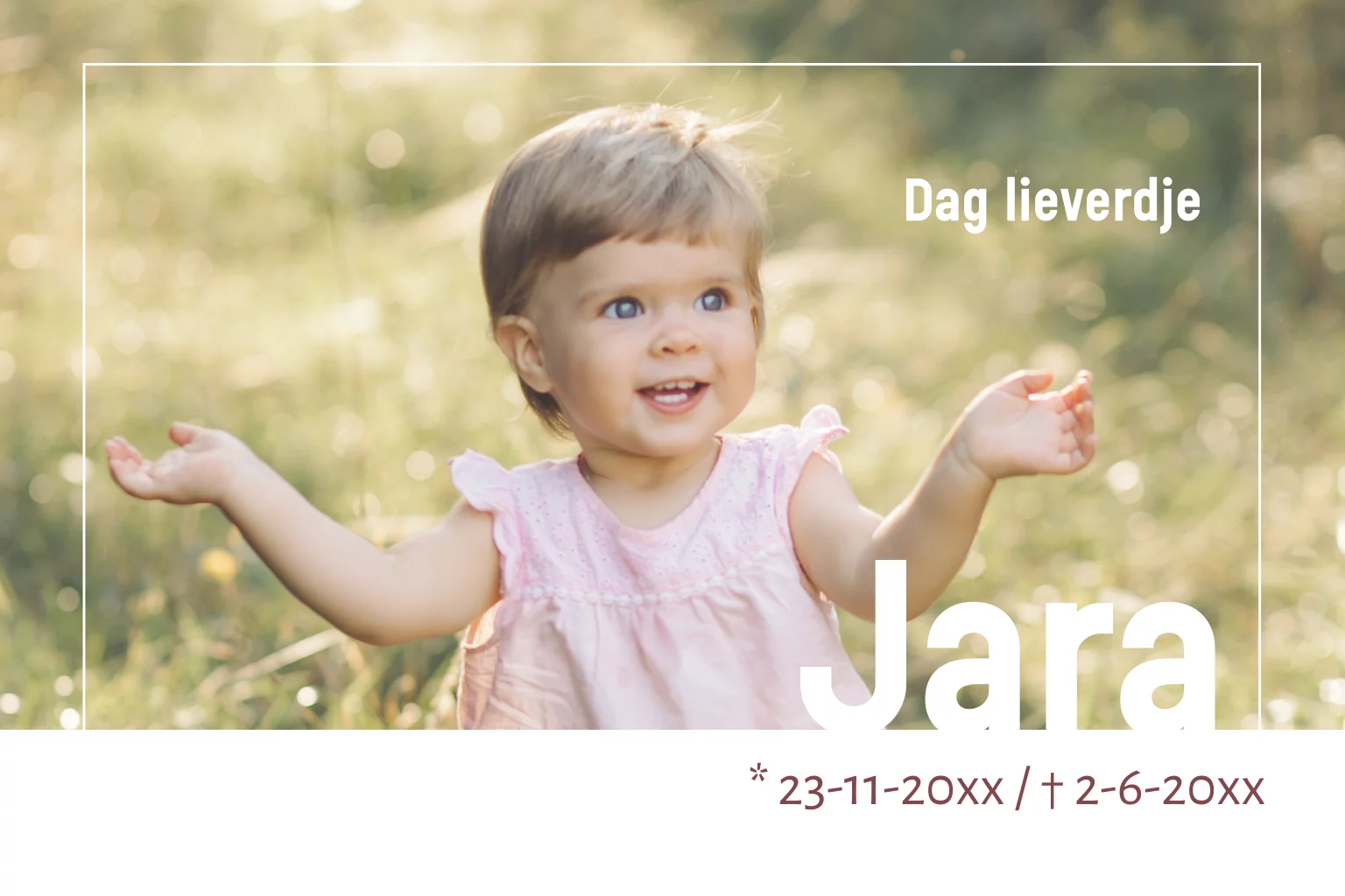 Rouwkaart voor een kind. Modern met ruimte voor het plaatsen van een eigen foto. (1271)