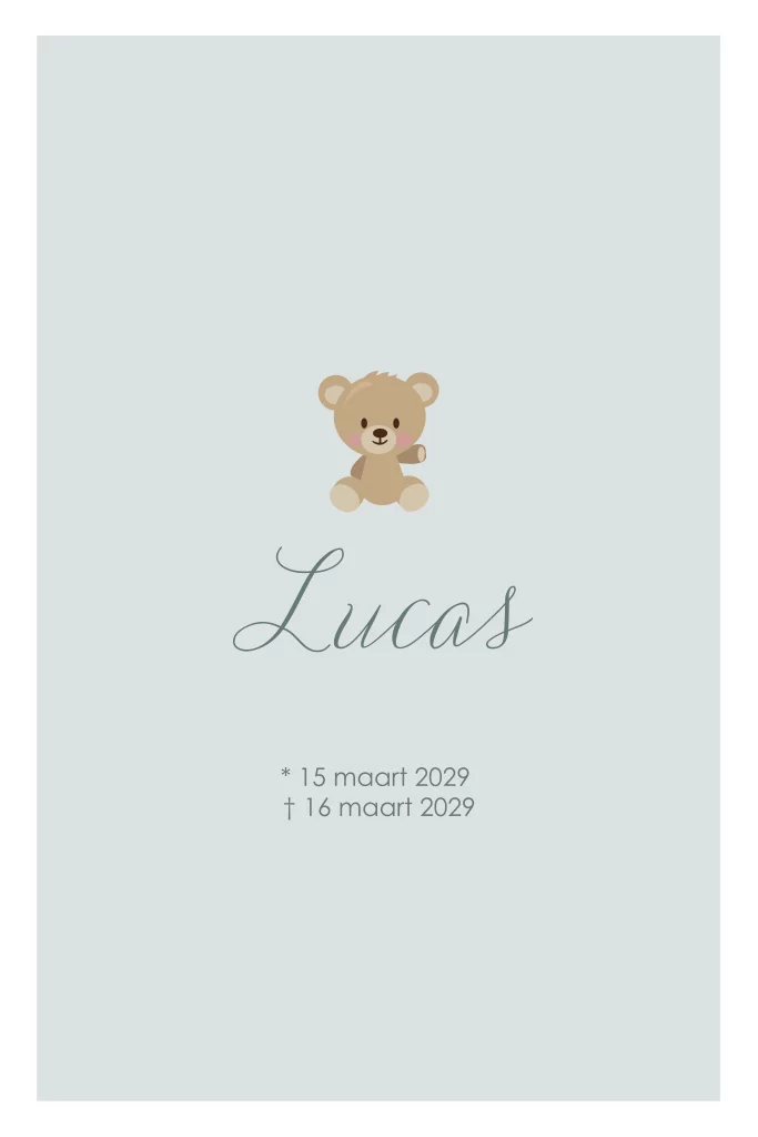 Rouwkaart voor een kind een jongen met een illustratie van een beer. (999999)