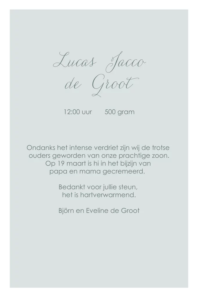 Rouwkaart voor een kindje of baby een jongetje met tekening beertje