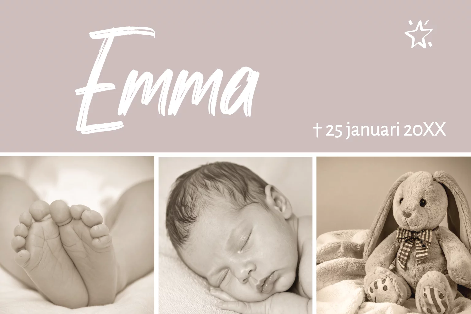Rouwkaartje voor een meisje kindje baby met foto collage