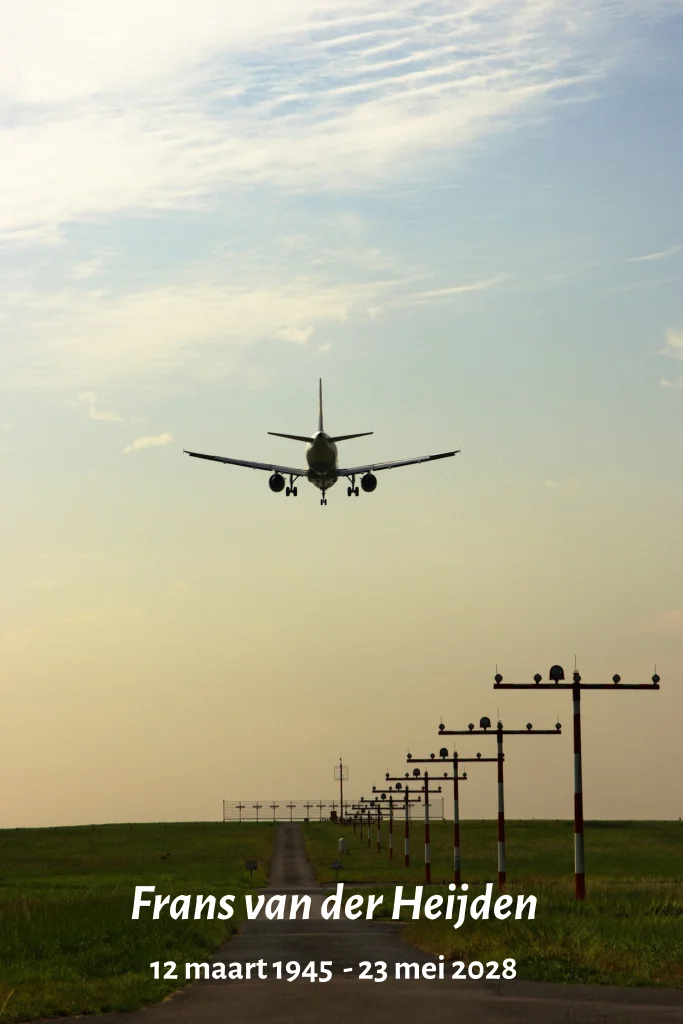 Prachtige rouwkaart met gefotografeerde vliegtuig en de zon