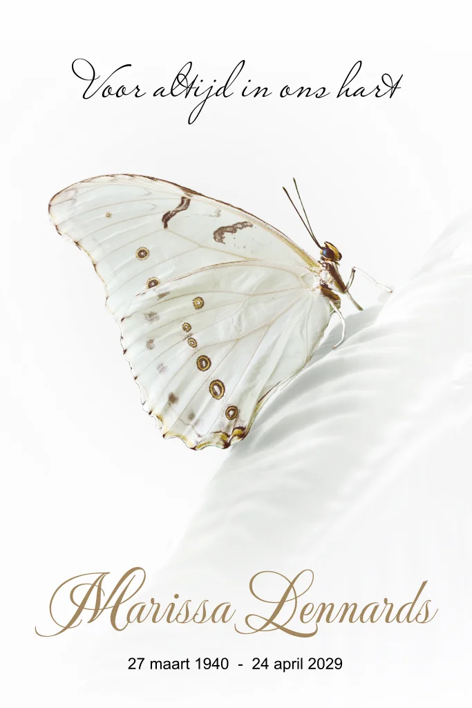 Staande rouwkaart met witte vlinder zacht katoen. (798)