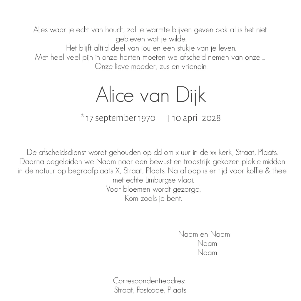 Rouwkaart voor een vrouw met roze orchidee en grijze tekst. (215)