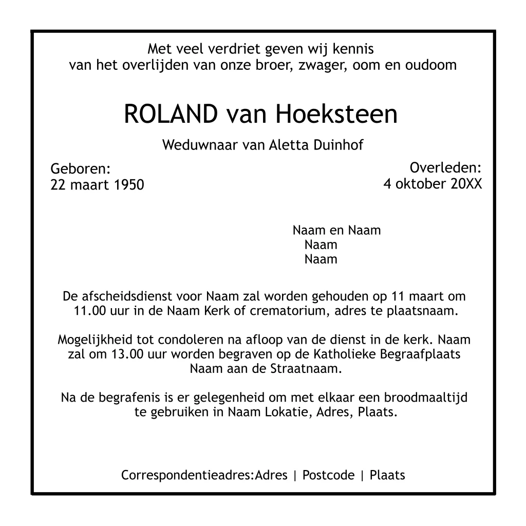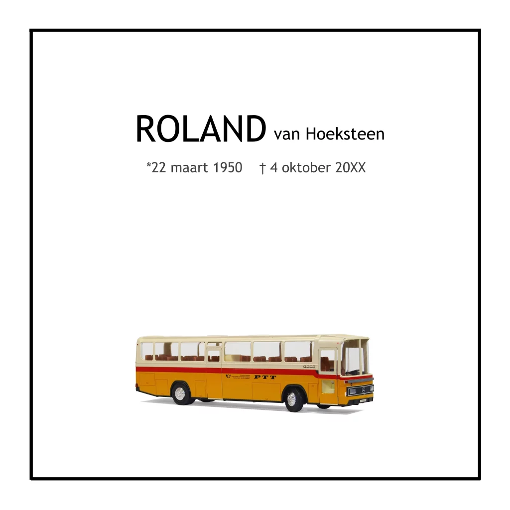 Traditionele rouwkaart maken met zwarte rouwrand voor een bus chauffeur. Plaats eventueel een eigen foto van een bus. Alle teksten en kleuren zijn naar keuze aan te passen. (39)
