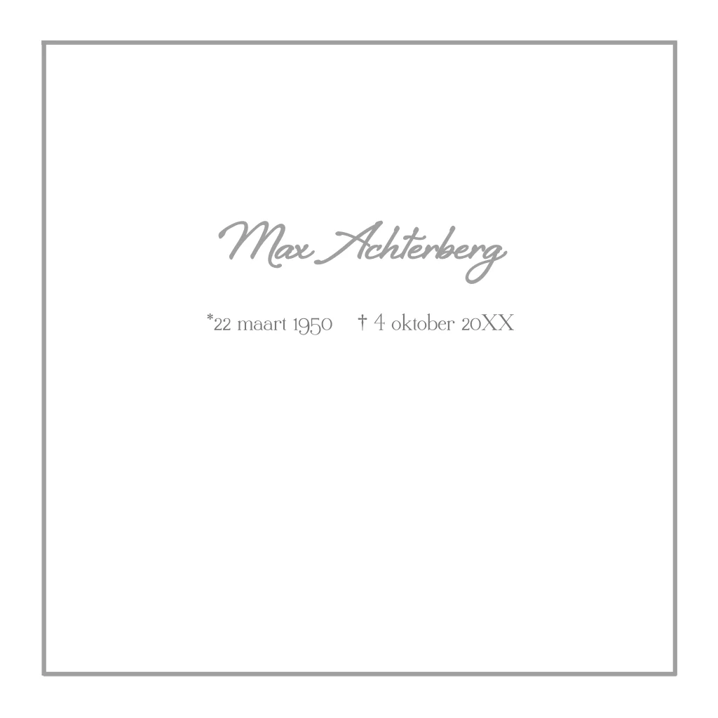Traditionele rouwkaarten gemakkelijk online maken met grijze rouwrand. Alle teksten en kleuren zijn naar keuze aan te passen. (41) TIP: Bekijk onze ruime collectie rouwkaarten via > Rouwkaarten