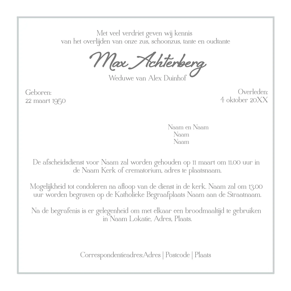 Traditionele rouwkaart maken met grijze rouwrand voorbeeld