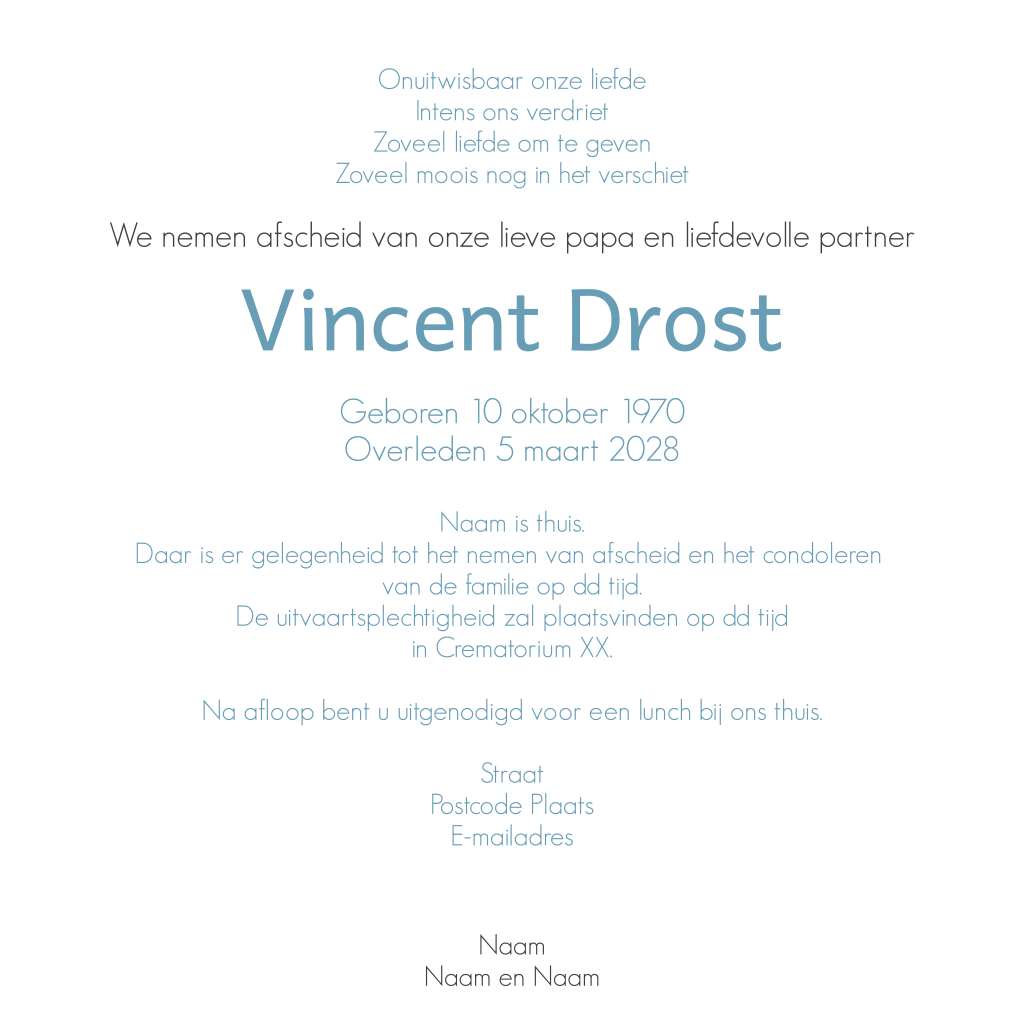 Trendy rouwkaart met een hamer voor een timmerman. Vervang eenvoudig de foto door een eigen versie. (283)