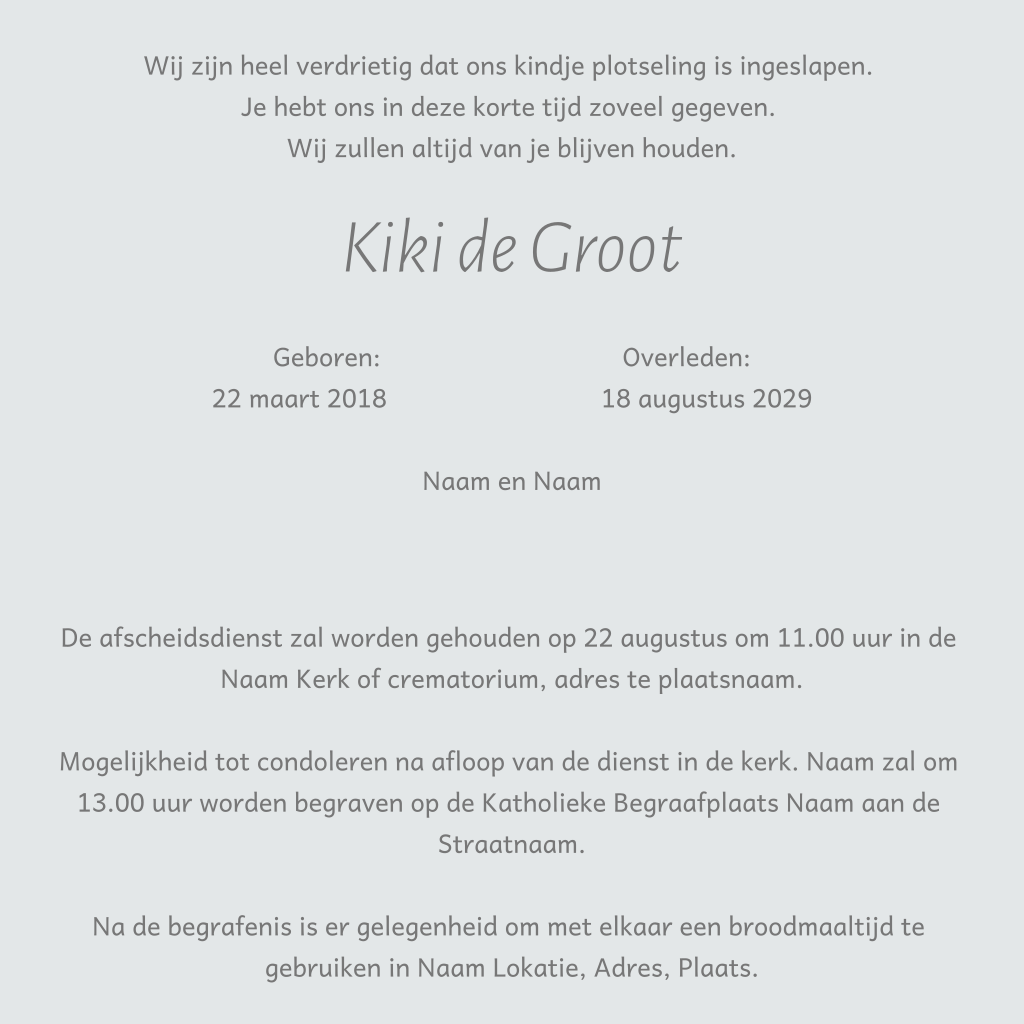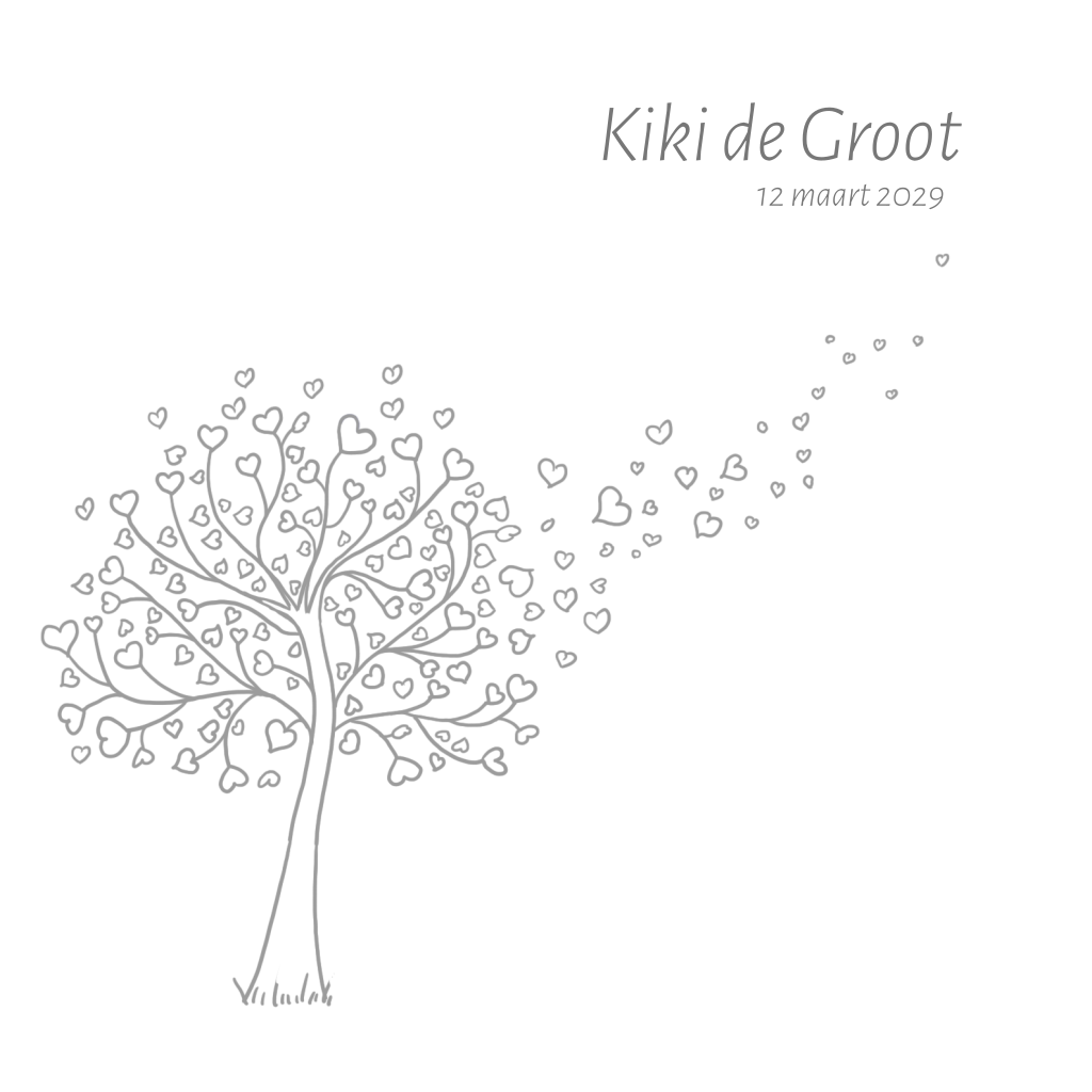 Wit rouwkaartje kind of baby mooi getekende boom met hartjes