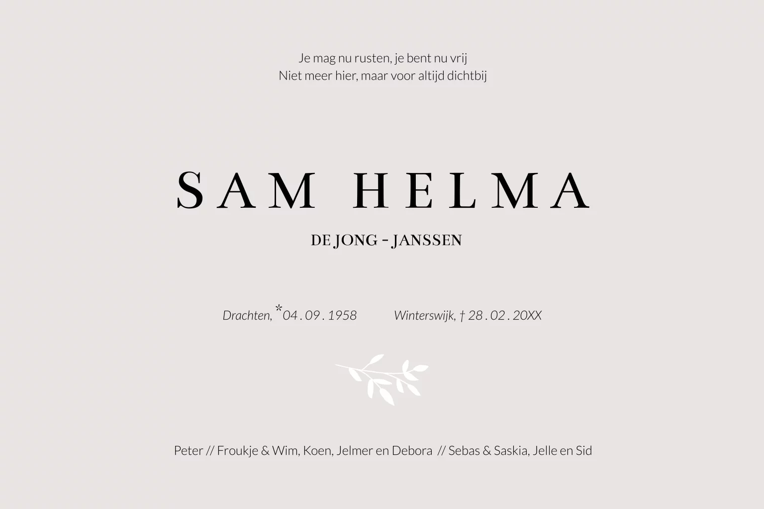 Rouwkaart modern zandkleurig met rouwrand en takje