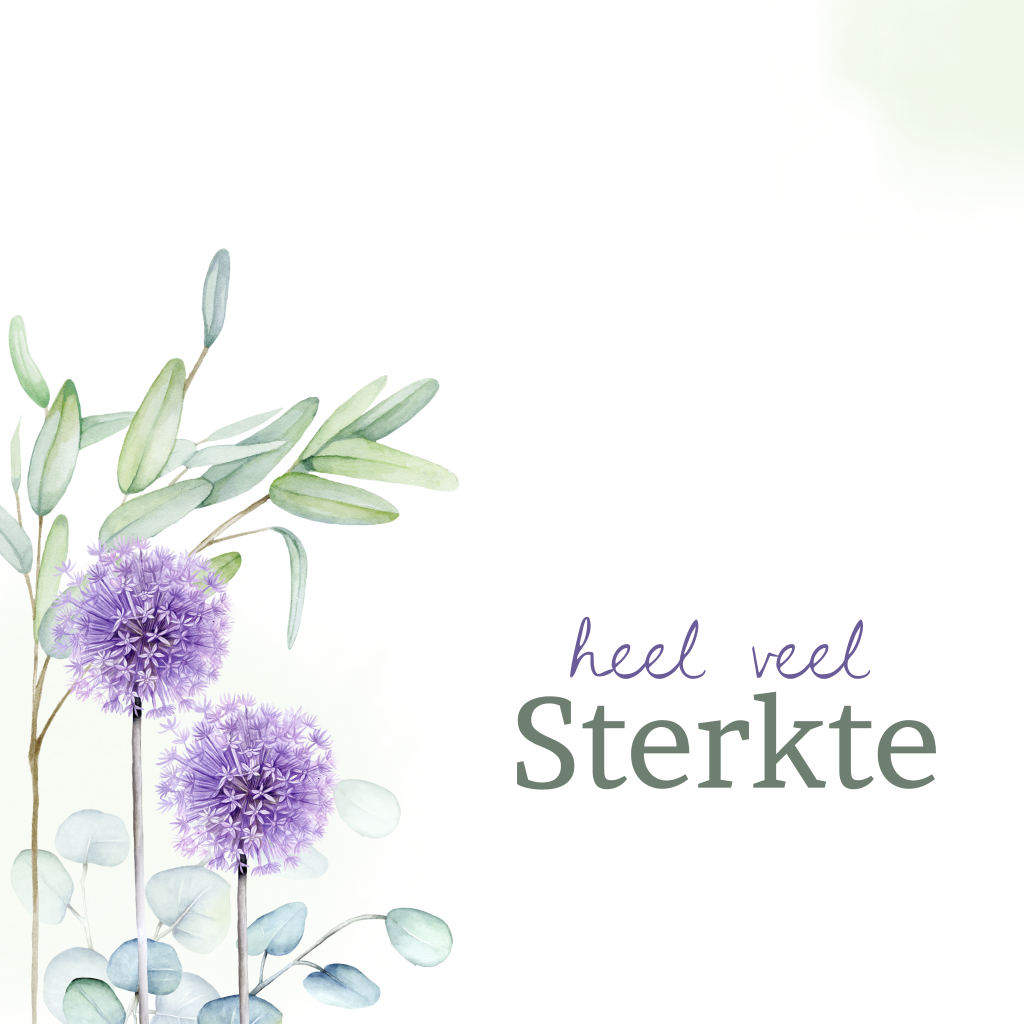 Condoleancekaart met sfeervolle bloemen in het paars en eucalyptus blad. (803)