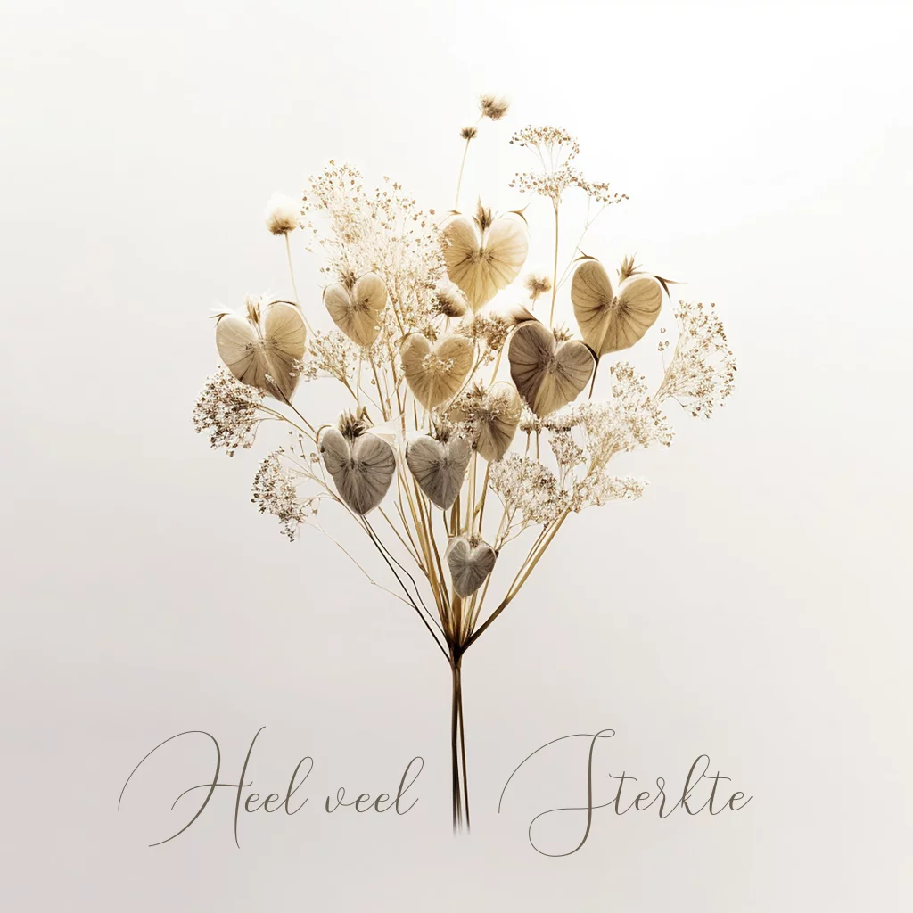 Stijlvolle condoleancekaart met getekende judaspenning in hartvorm. Tekst op de voorzijde is ook aan te passen. (1012)