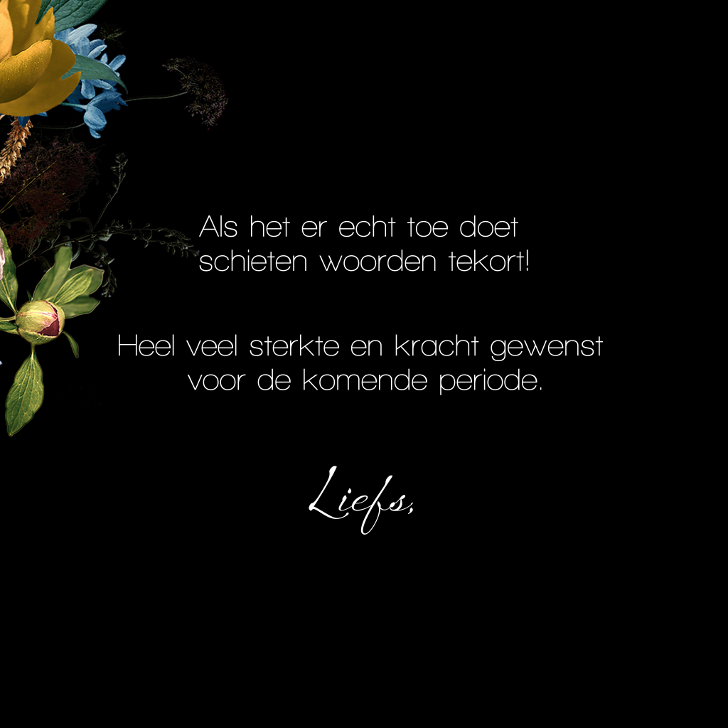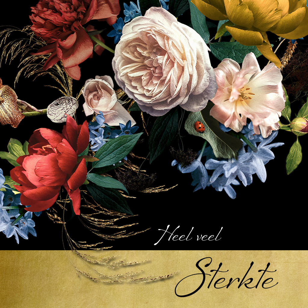 Prachtige kaart om sterkte te wensen. Met klassiek bloem boeket als van een oud Hollands schilderij. (835)