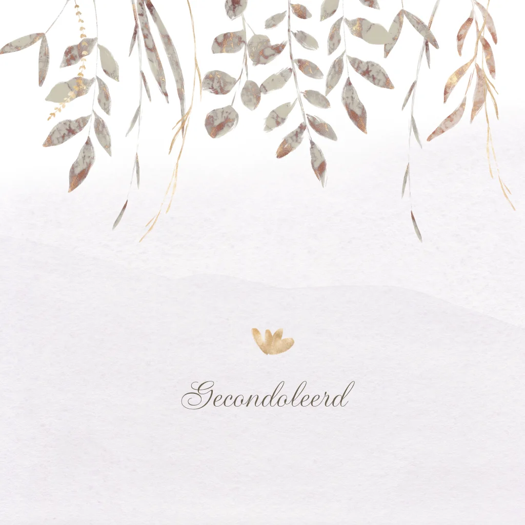 Condoleancekaart modern met achtergrond met kleurverloop met goudlook takjes. (700)