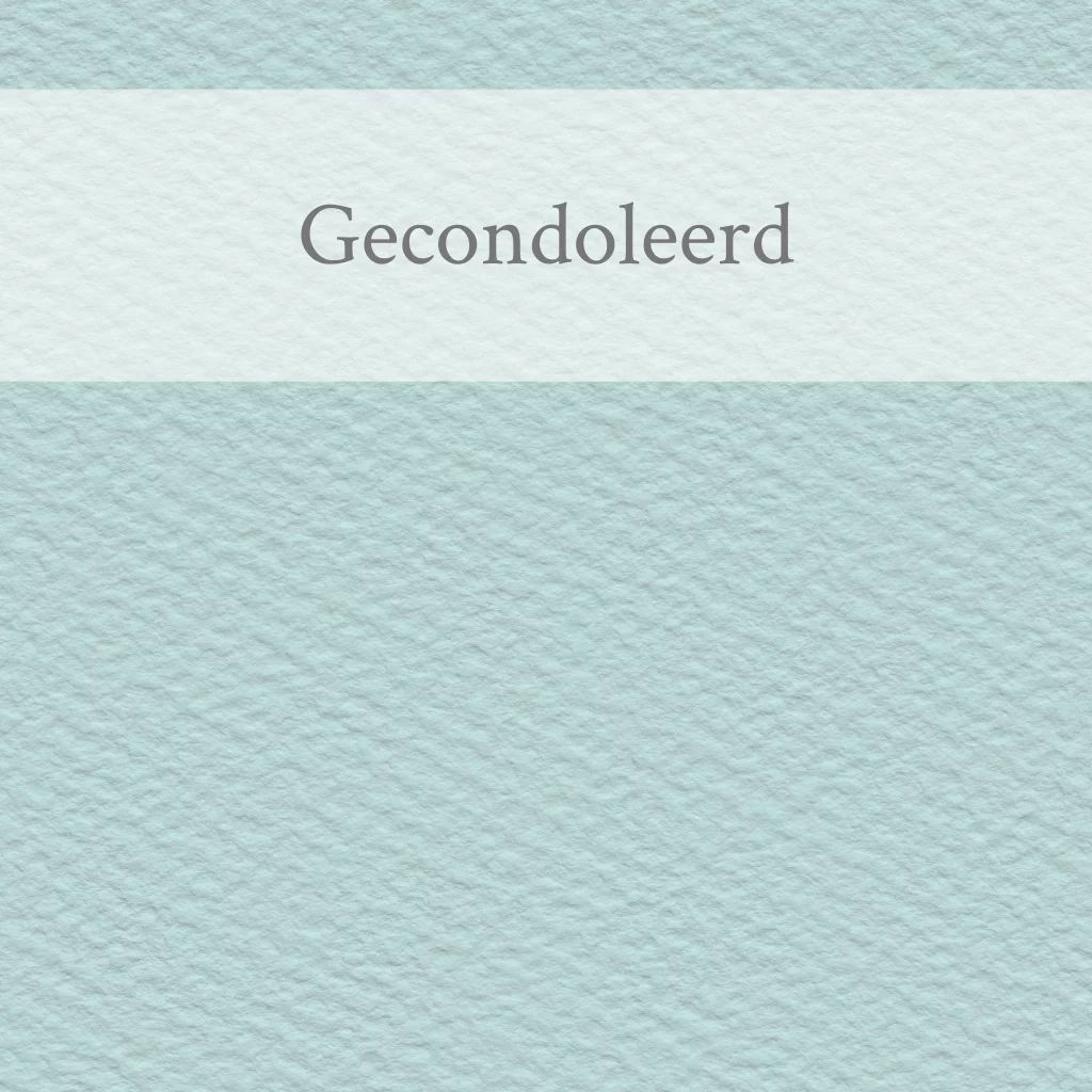 Gecondoleerd kaart blauw karton met witte tekstrand