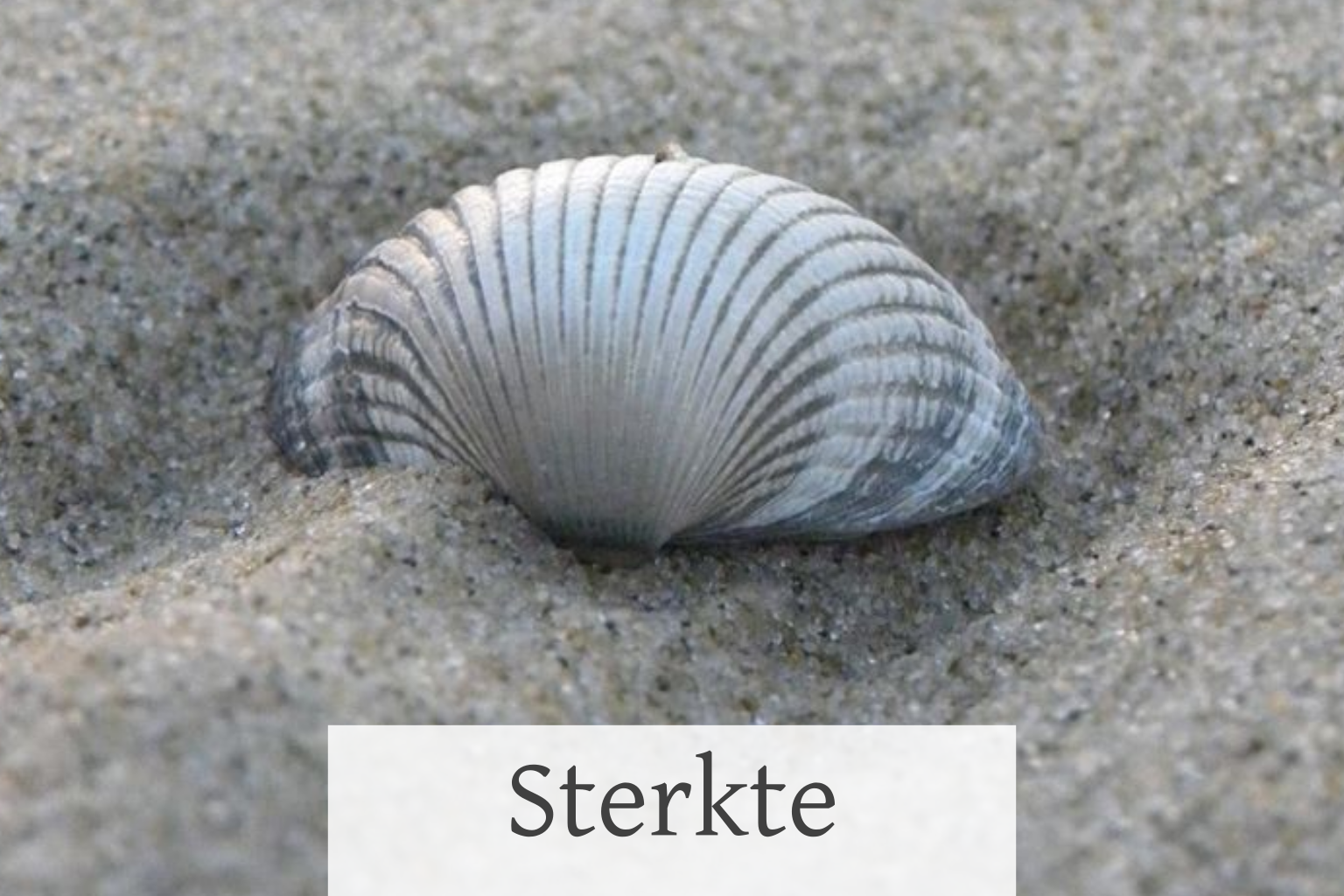 Sterkte kaart na overlijden maken met foto van zand en grote schelp. (123)
