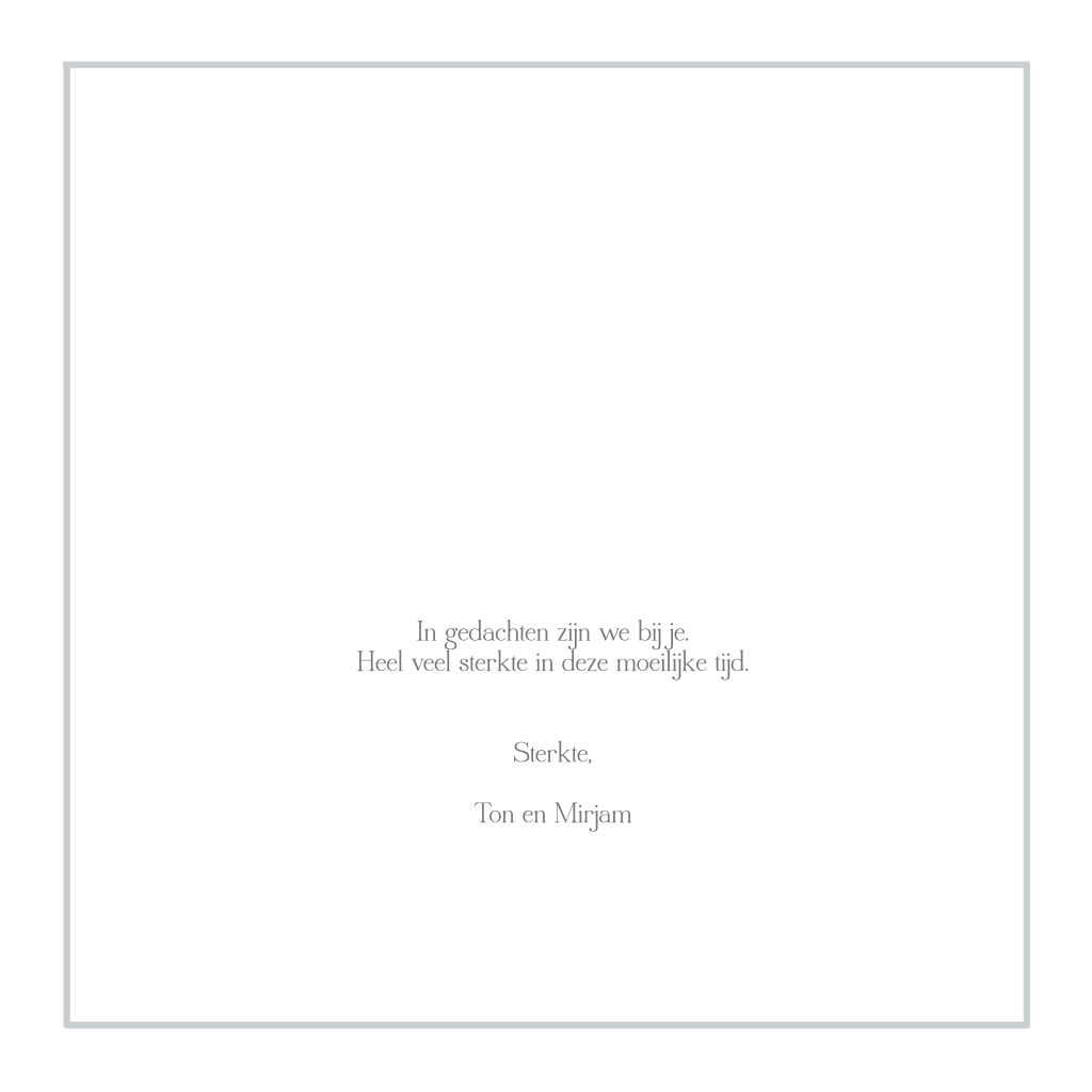 Met innige deelneming kaart gemakkelijk online maken met grijze rouwrand. Alle teksten en kleuren zijn naar keuze aan te passen. (41)