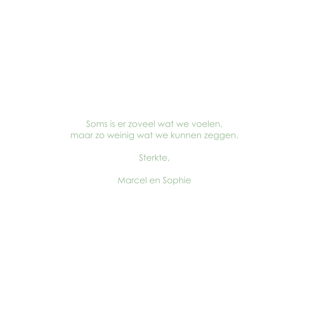 Met innige deelneming kaart man vrouw met paarse bloem en kiezelstenen. Kleuren en teksten zijn naar keuze aan te passen. (27)