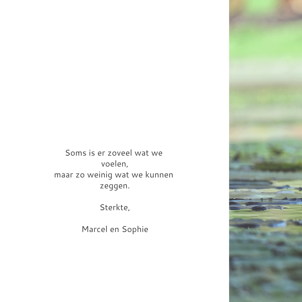 Condoleance kaart met paarse waterlelie en veel groen. Met de lucht en water in de ochtend. (22)