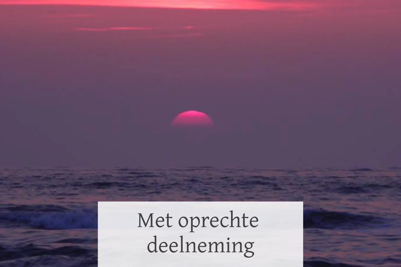 Met oprechte deelneming kaart met foto van zee roze lucht en meeuw. (126)