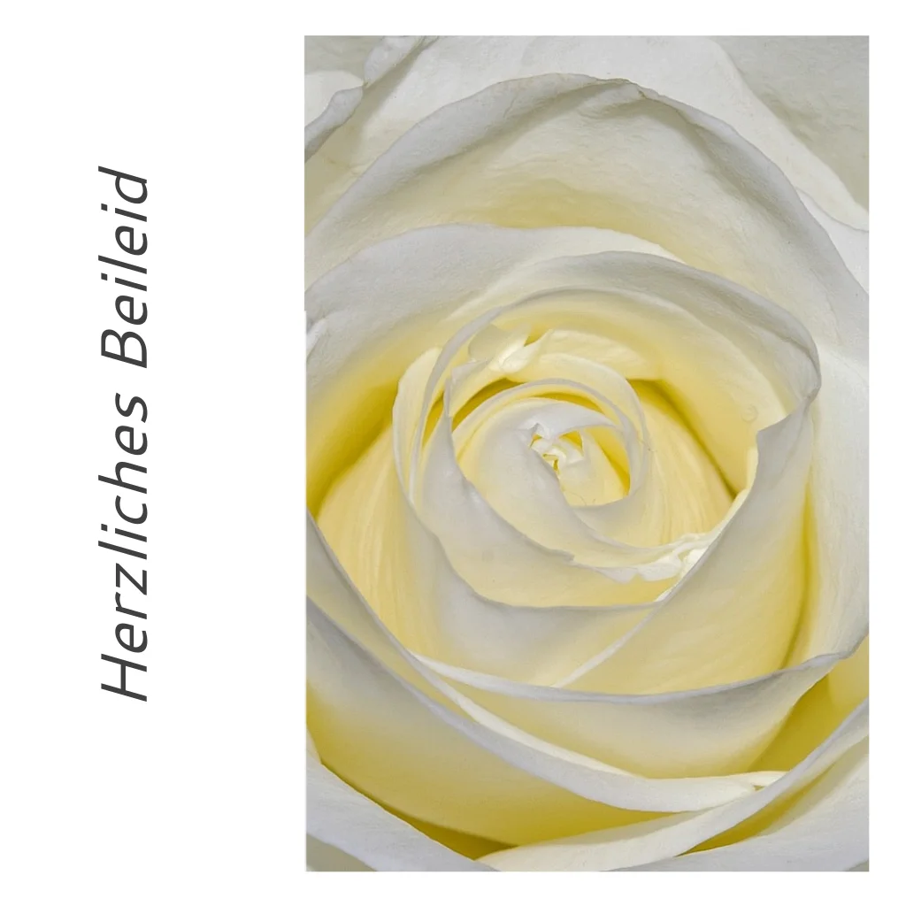 Mooie stijlvolle rouwkaart in het Duits kaart met wit met gele roos om iemand te condoleren.