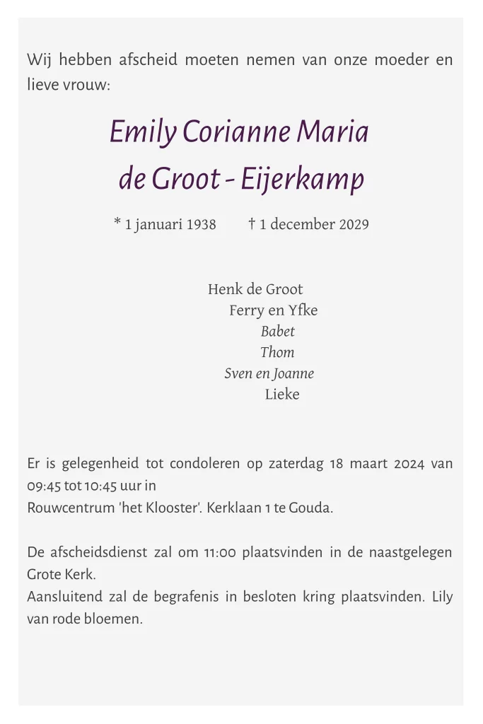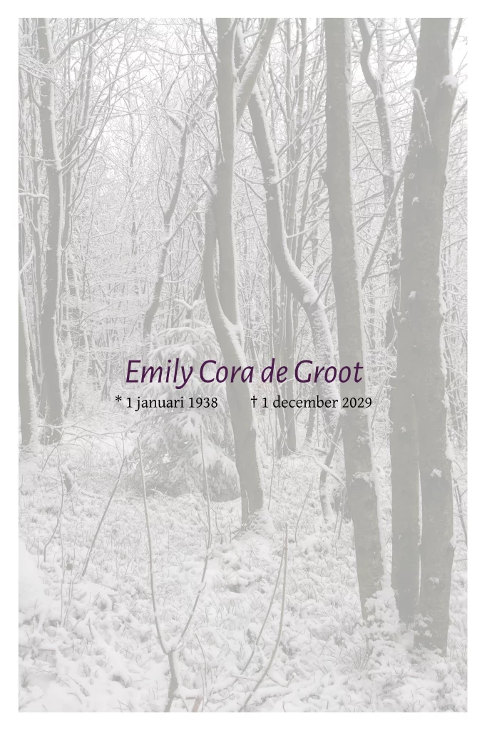 Rouwkaart met een foto van een besneeuwd post in grijs tinten. (1212)