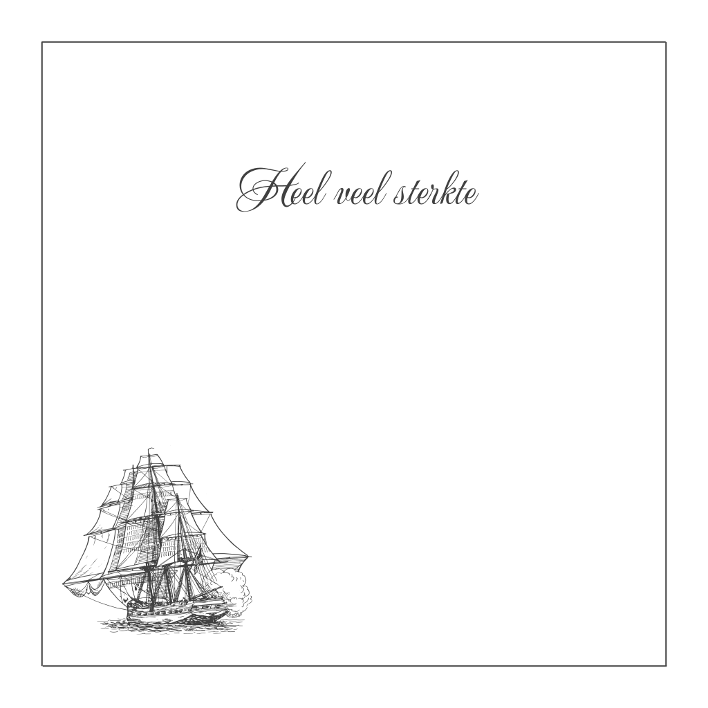 Heel veel sterkte condoleancekaart met getekend schip en grijze rouwrand. (69)