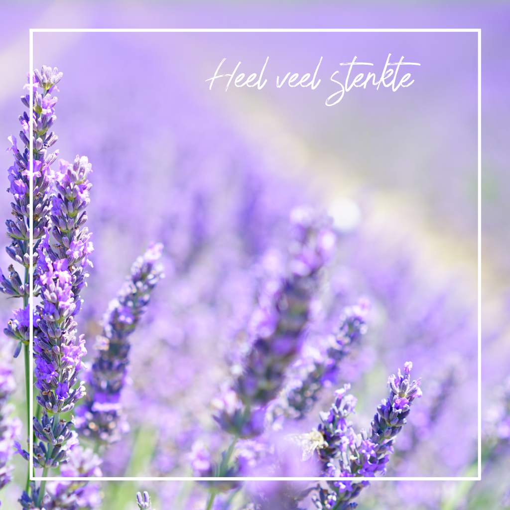 Mooi paarse sterkte wenskaart lavendel witte rouwrand