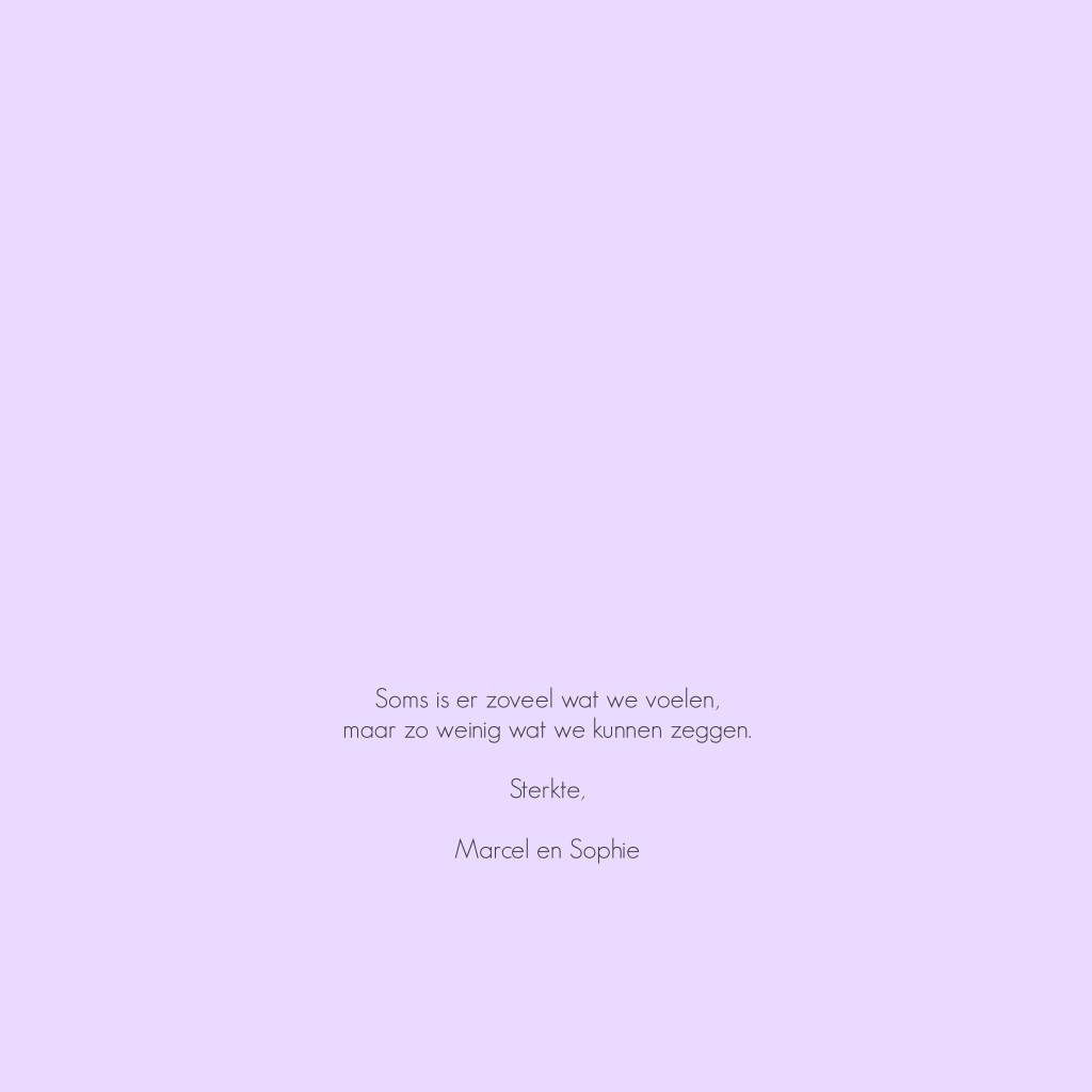 Mooi paarse condoleance kaart lavendel witte rouwrand. Alle teksten en kleuren zijn naar keuze aan te passen. (422)
