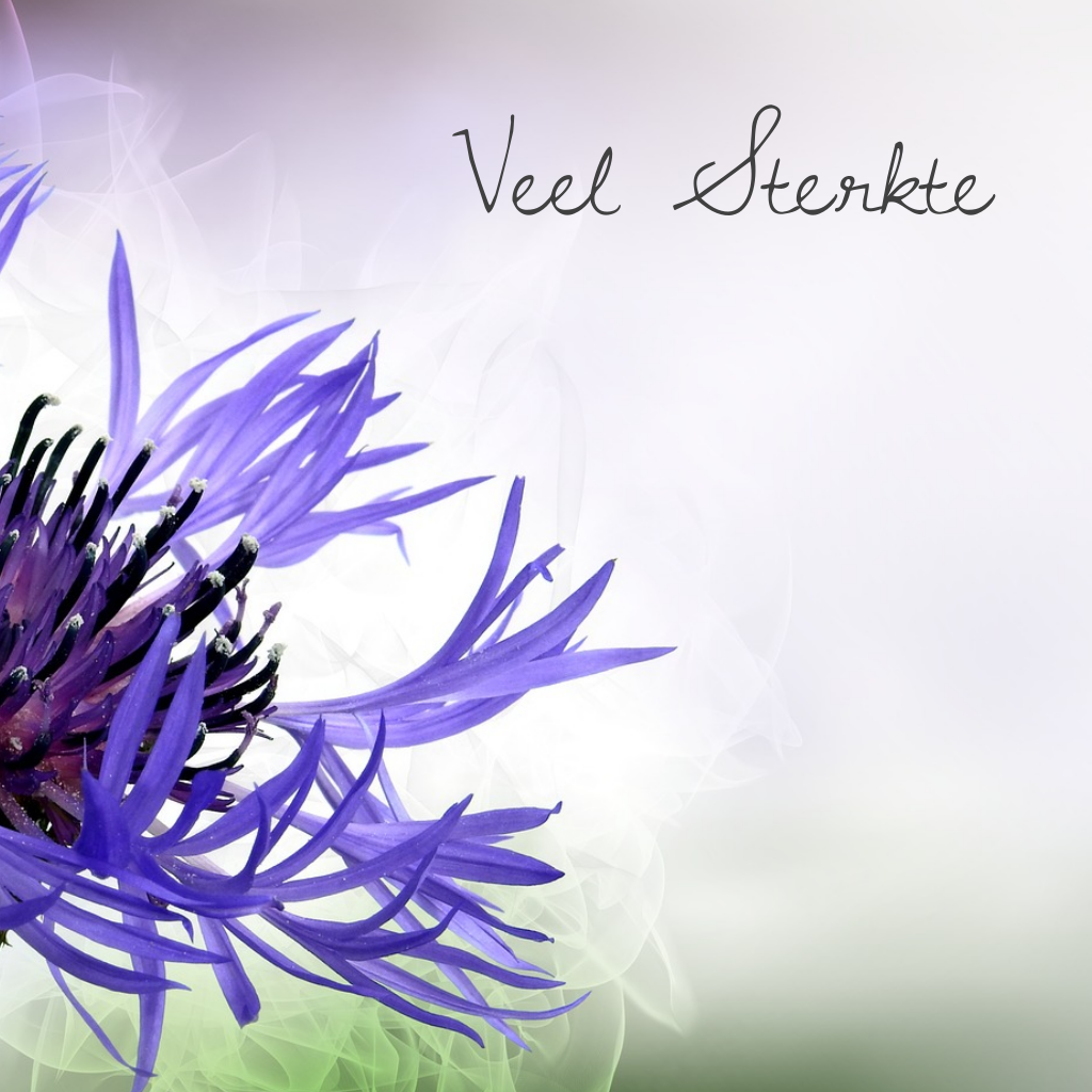 Sterkte condoleance kaart met paarse bloem