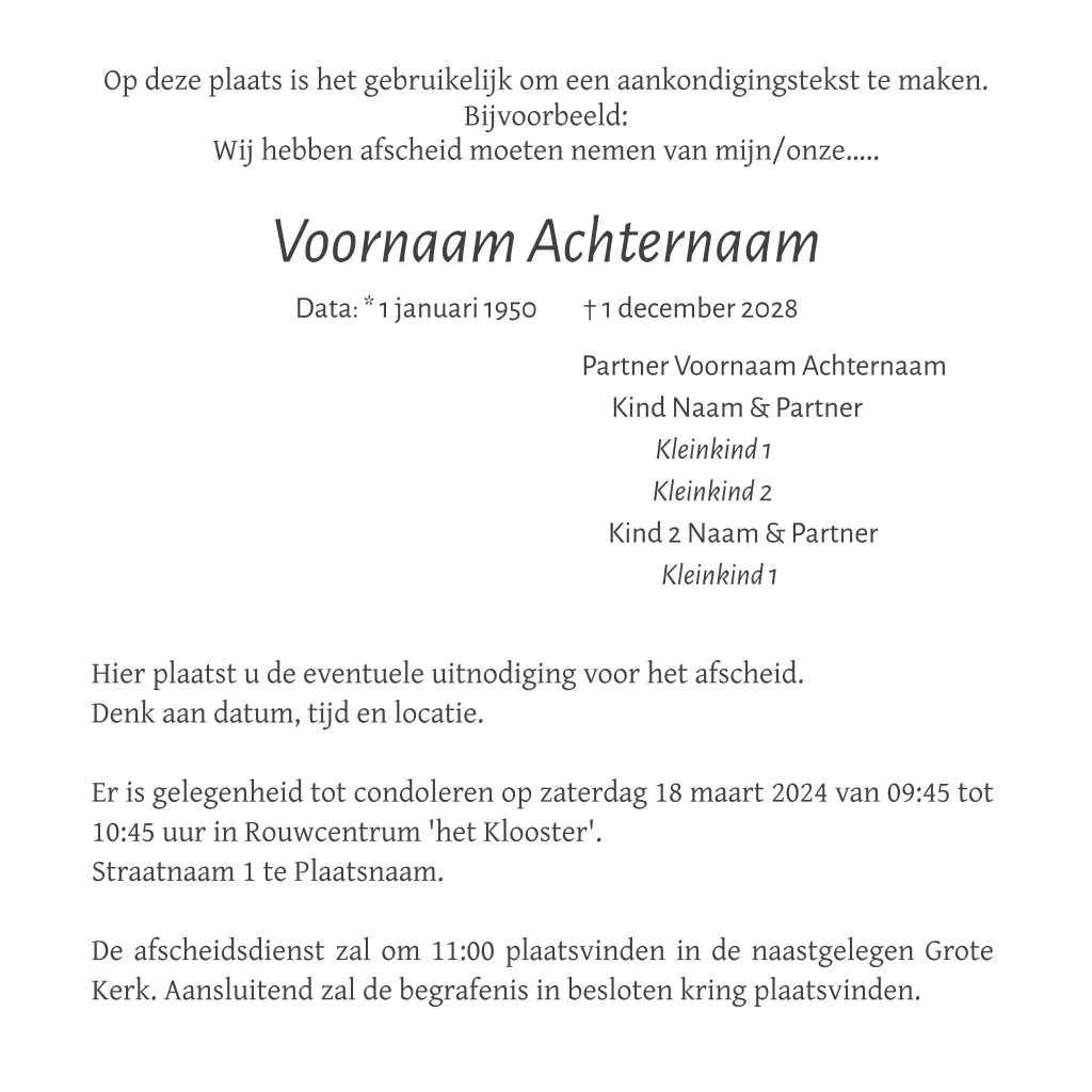 Dubbele vierkant rouwkaart zelf ontwerpen