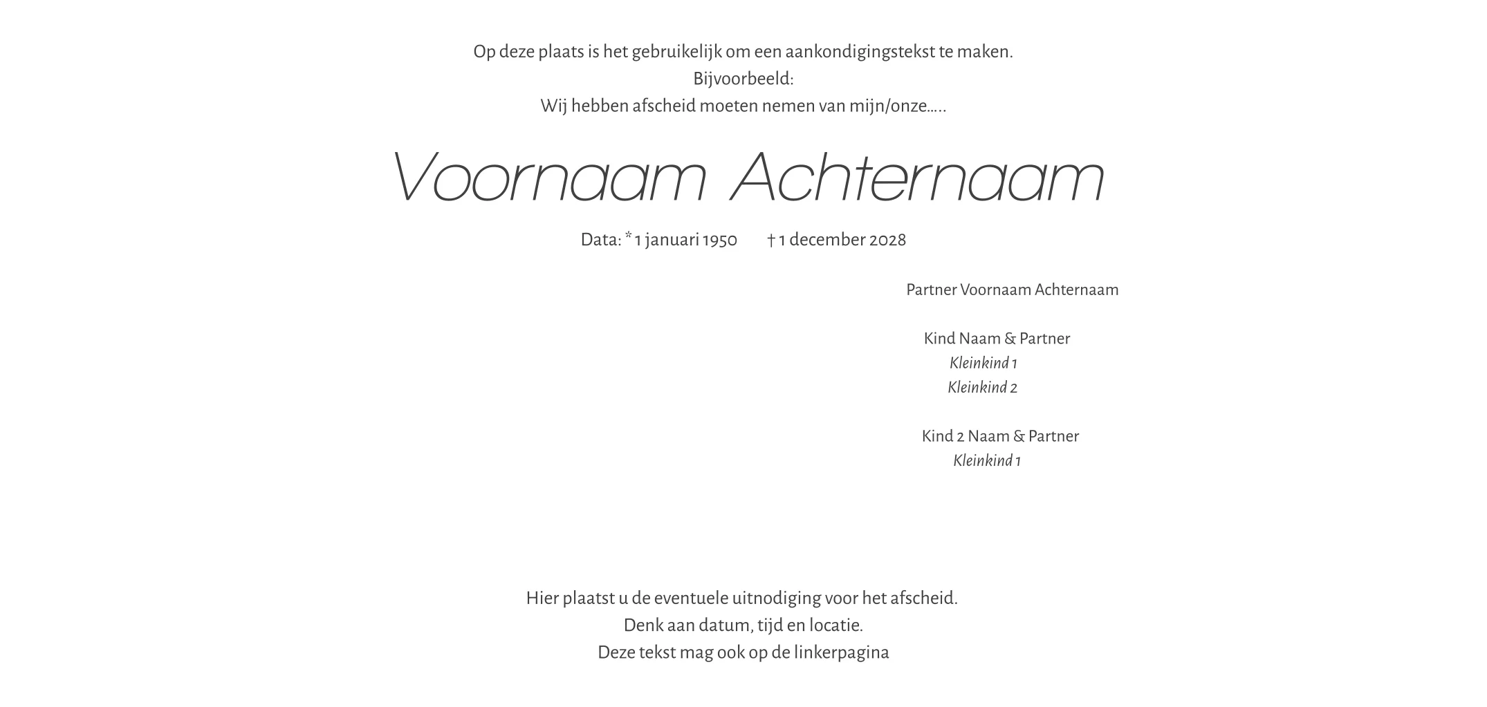 Start met dit blanco ontwerp van een panorama formaat dubbele kaart 21x10 cm kaart en ontwerp de rouwkaart.
